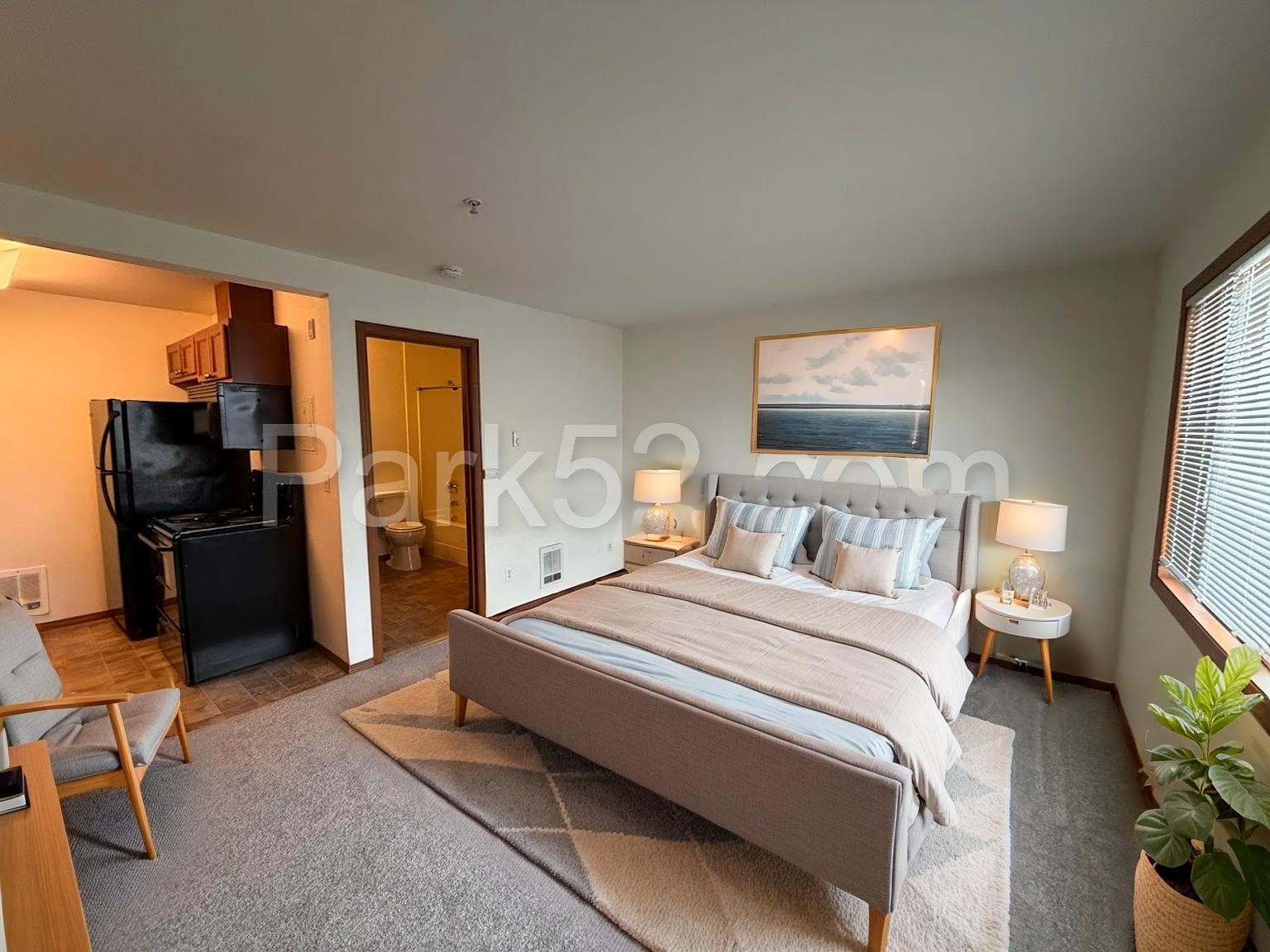 This 2nd floor studio condo/apartment in North Tacoma offers a convenient and comfortable living space. The condo/apartment features a modern kitchen with granite counters, oven/range, microwave, dishwasher, and refrigerator. Enjoy the convenience of an on-site laundry facility and off-street parking in this gated community.